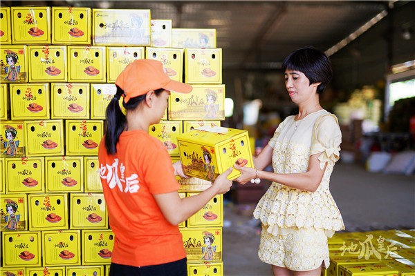 要想讓地瓜成為“爆品”,讓消費者記住,就得有品牌。她注冊了“地瓜皇后”的商標(biāo),并且請專業(yè)團隊設(shè)計了卡通logo,正式銷售家鄉(xiāng)特產(chǎn)地瓜!暗毓匣屎蟆边@個名字聽上去十分霸氣,透露出吳偉蓮雷厲風(fēng)行的直爽性格,讓人感覺到她是個不折不扣的“女漢子”。