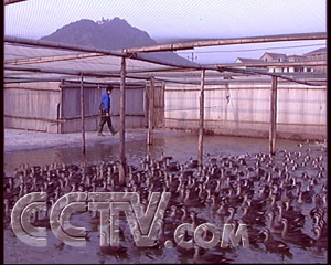2006年2月15日,當記者來到施國夫的養(yǎng)殖場時,遠遠地就發(fā)現(xiàn)他的養(yǎng)鴨場用網(wǎng)罩得嚴嚴實實的,里面養(yǎng)的不是鴨子嗎?為什么要用網(wǎng)罩著呢?