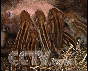 緊接著,隋學(xué)金寫了申請,找了保健醫(yī)生。得到當(dāng)?shù)亓謽I(yè)部門批準(zhǔn)后, 2002年春天,早就從岳父那里學(xué)到狩獵技術(shù)的隋學(xué)金從山中抓回了兩頭野豬,正好是一頭公豬和一頭母豬。當(dāng)年11月,母豬就生下三頭小野豬。然而,不到一個(gè)月,3頭小豬卻意外死亡。