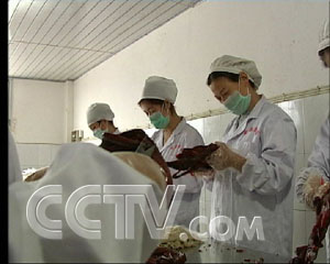 加工企業(yè)經(jīng)理 張陸泉:“烤鴨吃的就是香味,老鴨肉質(zhì)好,香,不會(huì)煮爛,也不會(huì)烤壞。肉鴨水分多,烤的時(shí)間不能太長,否則肉與皮會(huì)分離,老鴨不會(huì)。”