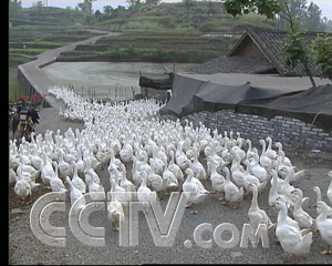 其實(shí),白鵝住別墅也是近幾年的事。南溪縣處于四川省西南部,位于長(zhǎng)江上游沿岸,這里的自然條件非常適合白鵝生長(zhǎng),當(dāng)?shù)剞r(nóng)民自發(fā)地養(yǎng)些白鵝,始終形不成規(guī)模。2001年秋天,為了發(fā)揮資源優(yōu)勢(shì),在當(dāng)?shù)卣膭?lì)下,一個(gè)叫徐綱的人成立白鵝養(yǎng)殖開發(fā)公司,并承諾保護(hù)價(jià)收購(gòu)養(yǎng)殖戶的白鵝。