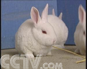 兔業(yè)公司經(jīng)理 程少純:“新的獺兔可以綜合從體態(tài),從毛的密度,光澤度,能夠體現(xiàn)在咱們寶獺1、2號上的好處。”
