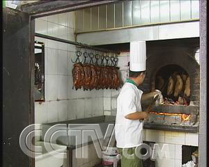 烤鴨師 姜宏國:“鮮鴨子烤的時候,比較好好烤,凍鴨子在這里面,經(jīng)過的程序不一樣,它需要化凍以后,化開以后烤,里面的水分,凍的鴨子流失得比較多,包括血管、 肉的質(zhì)量也比較不新鮮,鮮鴨子烤出來之后,口感比較好,包括皮的質(zhì)量比較好,油光亮非常好,顏色特別好看。”