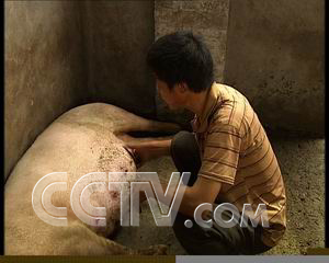周武生: “別人不行,不會打的一針打到耳骨神經(jīng)上去的話,就容易把豬打死了。”