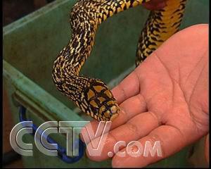 郭天國:“很多人把這個(gè)蛇當(dāng)?shù)厥召徶,運(yùn)到廣東,運(yùn)到廣東去賣,廣東去賣,很多人都成了百萬富翁,千萬富翁,千萬富翁,當(dāng)時(shí)在1997年也是很,就是很大的一個(gè)爆炸新聞了。”