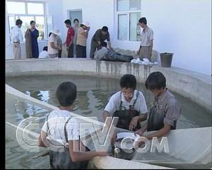 新疆阿勒泰市北屯鎮(zhèn) 祁永海:“生產(chǎn)苗種本身,它有很多技術(shù)員,養(yǎng)殖的專家,他們可以給我們進行指導,所以我們選擇在這個地方來搞養(yǎng)殖了。”
