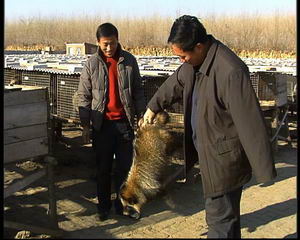 2005年欒志和投入了240萬(wàn)元引進(jìn)三千只種貉,把種群擴(kuò)大到15000只,還招聘了20多個(gè)工人,成為遠(yuǎn)近聞名的養(yǎng)殖大戶。正 如欒志和的判斷,2006年,貉子的市場(chǎng)比較穩(wěn)定,每張皮子的價(jià)格都在400到500之間,在記者采訪的時(shí)候就看見(jiàn)幾撥收購(gòu)商登門(mén)收皮子。這些收皮子的商 販想在養(yǎng)殖場(chǎng)里隨便挑但是欒志和早已立了自家的規(guī)矩,給他們?cè)O(shè)定范圍,讓他們?cè)谥付ǖ姆秶鷥?nèi)挑選。