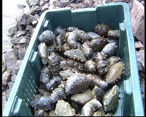 郝正祥:“05年是40塊錢左右,06年在54塊錢左右,到07年現(xiàn)在能達(dá)到70,67。現(xiàn)在海參價(jià)格在,一斤海參的水皮和一克黃金的價(jià)格幾乎等同。”