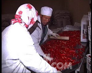 辣椒加工企業(yè)員工 李新華:“都是老工人的時候,我們的產(chǎn)量和個人我們拿的錢非常多,F(xiàn)在他搭配的人員全都是新工人,所以對我們掙錢和產(chǎn)量都不利,我們掙不著錢了。”