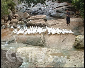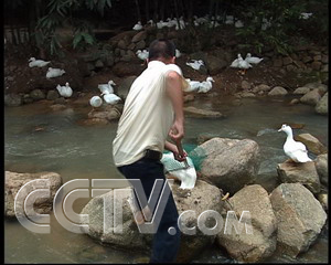 李國(guó)賢:“這個(gè)鴨子不好抓,天天在山澗里跑,肌肉非常發(fā)達(dá),會(huì)飛。”