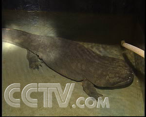 2006年,王國興的山洞里已經養(yǎng)殖了2萬多尾娃娃魚,成了遠近聞名的娃娃魚繁育養(yǎng)殖基地。在洪水中,被他逮住的這條種娃娃魚,已經長到130多斤。盡管為它丟了一截手指,王國興依然很欣慰。