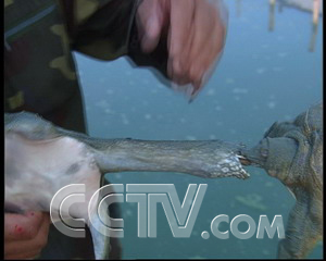 員工:“就是拿出來(lái)一看底板蒼白色的,就是沒(méi)有一點(diǎn)血跡了,它脖子伸得很長(zhǎng),就感覺(jué)很沒(méi)有力氣的那種癥狀,一抓上來(lái)之后馬上就死掉的,嘴巴這兒還會(huì)吐血。”