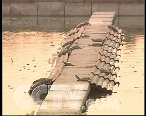 蔣有水:“你看這個(gè)甲魚都浮在上面了,活動(dòng)很遲鈍,按理來(lái)講,你過(guò)去了它馬上下去了,但是你過(guò)去了它不下去了,所以說(shuō)很遲鈍。”