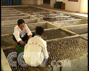 這時(shí),張成友的家里庫存了20多萬斤的鴨蛋?粗葍商炀鸵獕牡舻镍喌,張成友想到一個(gè)辦法。他聘請技術(shù)員做起了皮蛋。