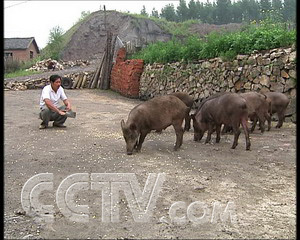 2005年,王志剛的野豬已經(jīng)發(fā)展到一百多頭,繁殖數(shù)量快,豬圈不夠用的時候,王志剛就把小野豬全散放在院子周圍,王秀香小心看著不讓小野豬跑出去?墒且蝗阂蝗旱囊柏i,想要看住卻沒那么簡單。