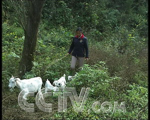 宜都畜牧局科員 彭勇海:“一般要等到樹長到三年以后,我們才放到退耕還林的里面放牧. ”