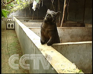 一不注意圈里的野豬就會(huì)跑出來,咬壞豬場(chǎng)栽種的植物,就在記者來到劉圣利豬場(chǎng)采訪的時(shí)候,一只野豬偷偷的跑了出來.