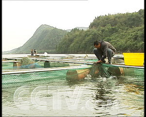 祝必緒當(dāng)時投入了六萬多元養(yǎng)起了這十多個網(wǎng)箱的鱘魚,現(xiàn)在他每年的收入都在二三十萬元左右