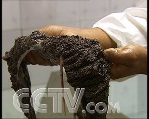 因?yàn)閮r格高,鱘魚的魚子醬在國外稱為黑金,在宜都,這些加工出來的魚子醬大多都出口到了歐洲的一些國家.魚子醬加工很簡單,在這個無菌車間這些取出的魚卵只要加上鹽就行了.