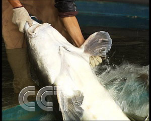 養(yǎng)殖戶:“像這一條魚有兩斤多重,在那個時候,兩三百元錢一斤的時候,這一條魚可以賣五六百元錢,真正稱為是水中的黃金,是軟黃金。”
