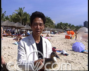 為了讓自己的鴨子恢復(fù)野性,翁永清每天都會帶著鴨子到海邊,讓它們享受自由,適應(yīng)大自然的環(huán)境。每當(dāng)它們野性難馴不再聽話的時候, 翁永清就會把它們關(guān)起禁閉。有了實戰(zhàn)經(jīng)驗,翁永清的海鴨每次都會在高空翱翔,吸引大批的游客。雖然飛走的鴨子讓他每次都要損失上幾百元,但一時間,三亞的 游客對海鴨都產(chǎn)生了濃厚的興趣。
