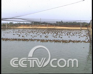 這一時的沖動給翁永清帶來了接連不斷的麻煩,這鴨子翅膀上的羽毛說什么也不能再剪了。為了避免鴨子跑掉,翁永清擴寬了池塘,搭建起 了天網(wǎng),給這批鴨子安置了一個新家。海鴨雖然不能高飛,但總算有了活動的空間,脂肪也自然而然的減少了。一年之后,翁永清的鴨舍里,終于有了盼望已久的鴨 蛋。