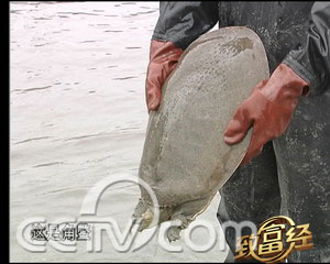 記者:剛剛把甲魚釣上來為什么要踩著它?