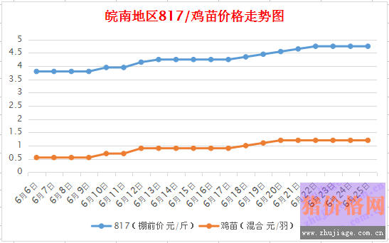 2018年6月25日-26日皖南地區(qū)817-麻雞行情最新走勢(shì)