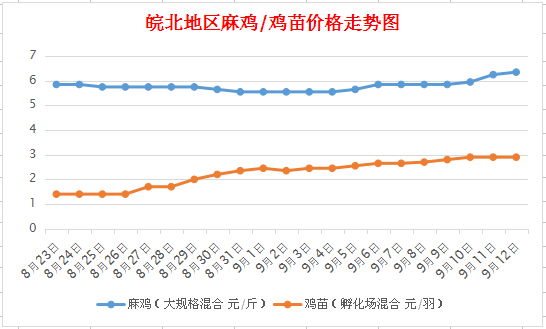 皖北地區(qū)麻雞/雞苗價(jià)格走勢圖(圖表來源:雞病專業(yè)網(wǎng))