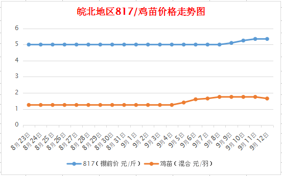 皖北地區(qū)817/雞苗價(jià)格走勢圖(圖表來源:雞病專業(yè)網(wǎng))