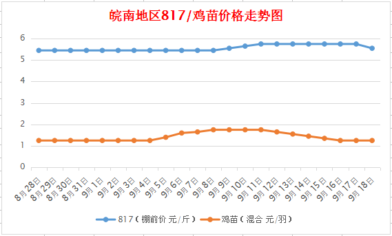 皖南地區(qū)817/雞苗價格走勢圖(圖表來源:雞病專業(yè)網(wǎng))