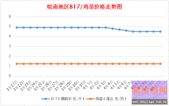 皖南地區(qū)817/雞苗價格走勢圖(圖表來源:雞病專業(yè)網(wǎng))
