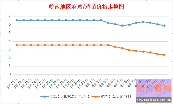 皖南地區(qū)麻雞/雞苗價格走勢圖(圖表來源:雞病專業(yè)網(wǎng))