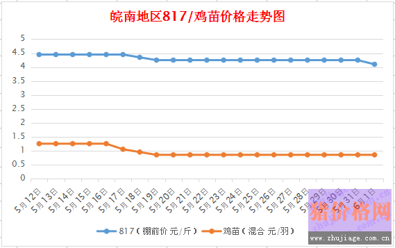 皖南地區(qū)817/雞苗價(jià)格走勢(shì)圖(圖表來(lái)源:雞病專業(yè)網(wǎng))