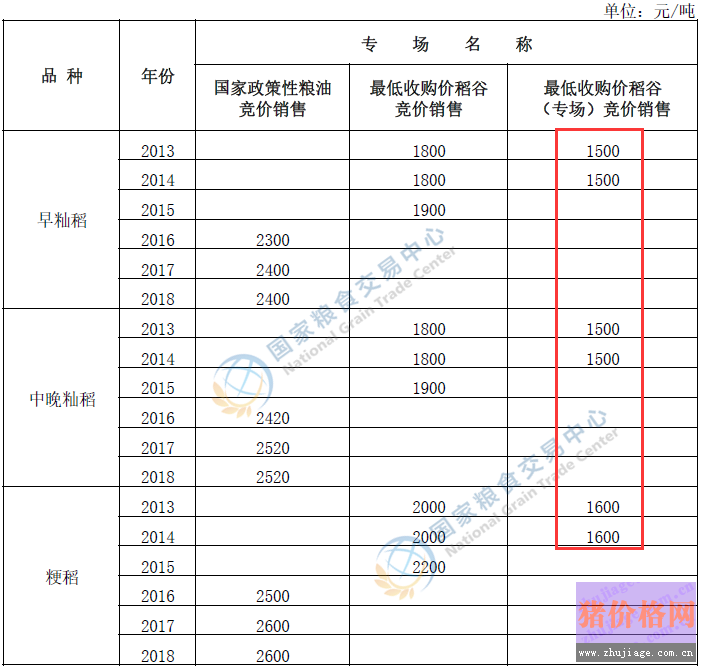 與2018年拍賣時間不同,今年首拍放在下周二與周五,分別是21日與24日。5月21日最低收購價稻谷(專場)競價銷售交易,由于公告發(fā)布后各主體針對(專場)兩字犯了難,畢竟此糧底價非常低,2013~2014年產(chǎn)早秈稻60萬噸,中晚秈稻30萬噸及粳稻30噸。秈稻競價銷售底價統(tǒng)一調(diào)整為1500元/噸,較去年下調(diào)500元/噸;粳稻競價銷售底價下調(diào)至1600元/噸,較去年下調(diào)800元/噸,如下圖所示,急劇誘惑力。根據(jù)以往的經(jīng)驗來看,專場糧基本是定向銷售給飼料或者酒精企業(yè),但筆者與多方溝通證實,此糧凡是國家糧食交易中心會員單位均可參拍。不過筆者提醒參拍企業(yè)雖然底價低,但要對糧質(zhì)別抱有過高的期望值。據(jù)有消息稱拍買后即對此糧認可,不得有違約行為。同時由于首拍,因此拍賣的主體或較多,一定要冷靜對待,控制溢價。