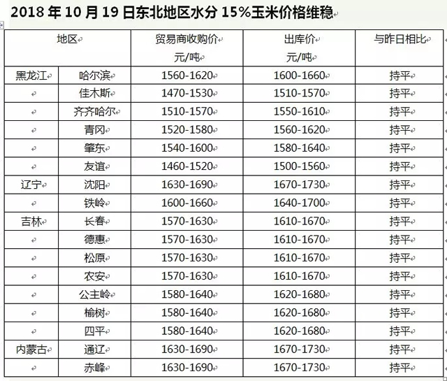 隨著新玉米的大量上市,目前玉米價(jià)格預(yù)期紛紛走高,但是目前市場價(jià)格卻保持相對穩(wěn)定,基本維持在0.78~1.1元/斤的價(jià)格,東北產(chǎn)區(qū)深加工陳糧收購價(jià)格穩(wěn)定,部分企業(yè)相繼開秤收購新季玉米,收購價(jià)格同比高開50—200元/噸。距離新糧批量上市僅剩半月,價(jià)格底部有望抬升。昨日東北地區(qū)玉米價(jià)格基本穩(wěn)定,局部小幅下跌,各地價(jià)格如下: