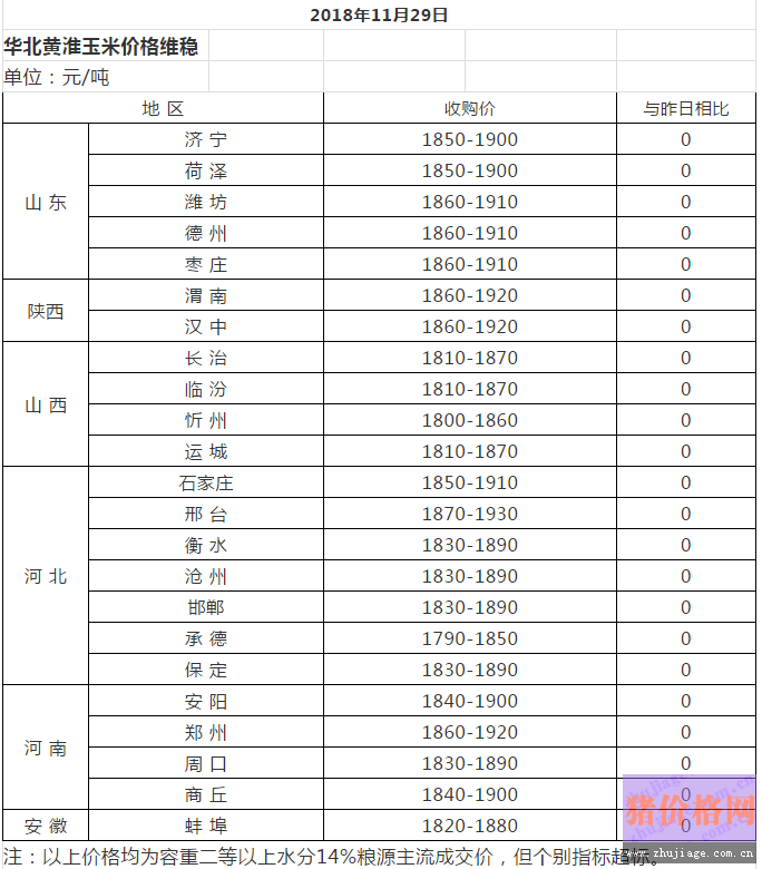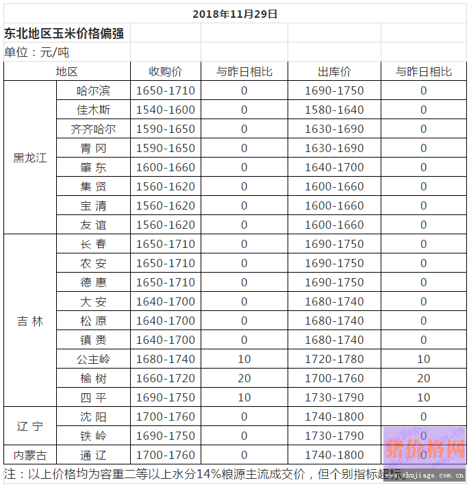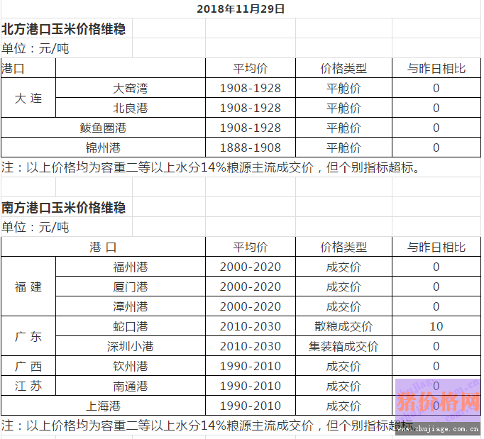 2018年11月29日國內(nèi)玉米價格匯總