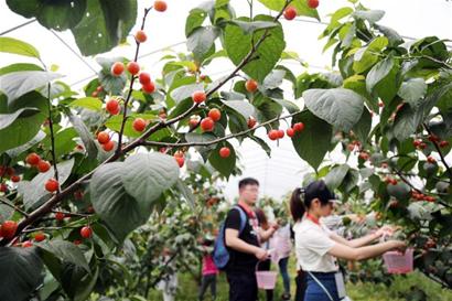 “今年櫻桃園內(nèi)櫻桃的產(chǎn)量比去年增加了一倍,為了拓寬銷售渠道,我們?cè)谠胁烧蔚幕A(chǔ)上,線上線下聯(lián)動(dòng),線上與上海沃民貿(mào)易有限公司合作,在網(wǎng)上每天銷售1萬(wàn)多公斤。線下,利用嘉興、寧波、上海等水果批發(fā)市場(chǎng)銷售,每天也能銷售2500公斤左右。此外,我們公司還與各大旅行社合作推出各類采摘、旅游觀光線路,增加櫻桃知名度!闭录t飛介紹,公司還投資600萬(wàn)元在魏塘街道三里橋村建了深加工基地。