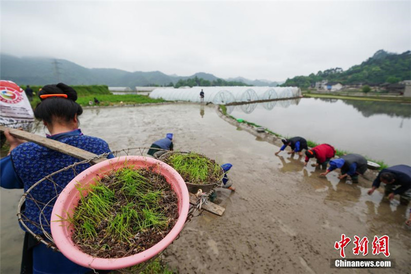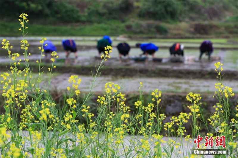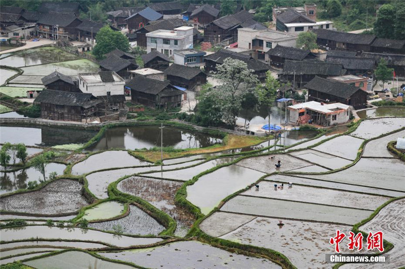 谷雨節(jié)氣剛過(guò),貴州省丹寨縣民眾搶抓農(nóng)時(shí),耕田、栽插。這里的秧田多在山間,當(dāng)?shù)靥厣r(nóng)產(chǎn)品受到全國(guó)各地市場(chǎng)青睞。中新社記者 賀俊怡 攝