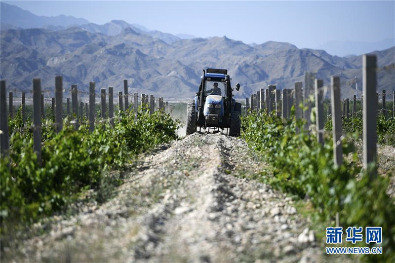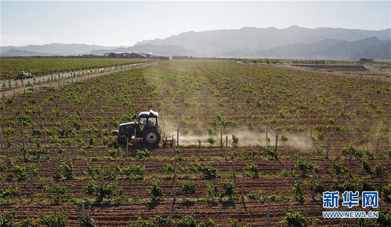 近日,位于寧夏賀蘭山東麓的葡萄酒產(chǎn)業(yè)帶上,各釀酒葡萄種植基地綠意盎然,一派生機。近年來,寧夏依托賀蘭山東麓的天然地理優(yōu)勢,大力發(fā)展葡萄酒產(chǎn)業(yè)。新華社記者王鵬攝