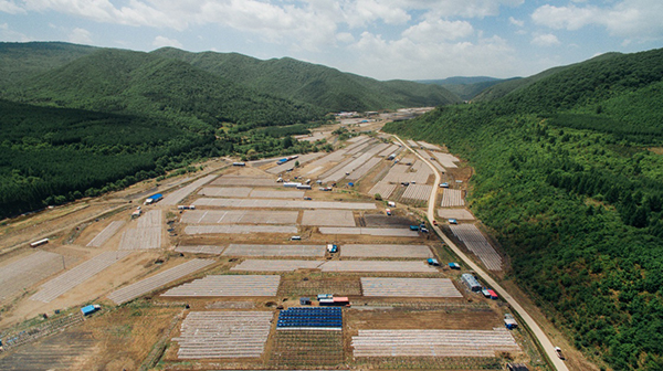 這是汪清縣天橋嶺鎮(zhèn)口山村的黑木耳栽培基地(5月24日無人機(jī)拍攝)。