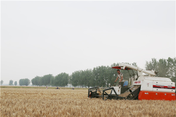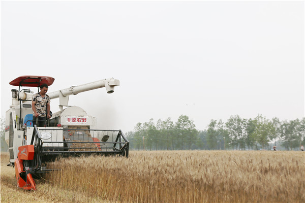 圖為5月24日,淮濱縣弱筋小麥由南向北開鐮。