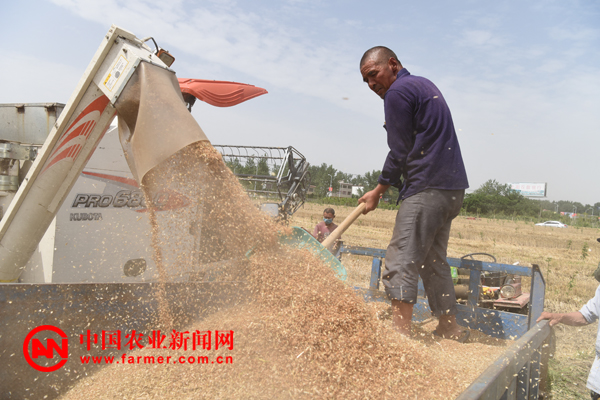 圖為5月28日,河南省正陽縣慎水鄉(xiāng)丁莊村村民正在搶收小麥。高萬寶 中國(guó)農(nóng)業(yè)新聞網(wǎng)記者 張培奇 攝