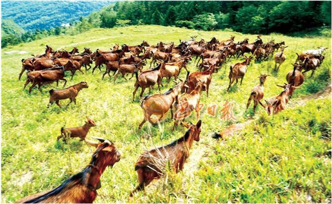 圖:南江縣團結(jié)鄉(xiāng)羅溝村山林里放養(yǎng)的黃羊