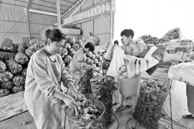 5月17日,安徽省宿州市埇橋區(qū)順河鄉(xiāng)興農(nóng)瓜菜專業(yè)合作社社員將“經(jīng)典一號(hào)”薄皮辣椒裝袋,以每公斤2.4元的價(jià)格出售給外地客商。“經(jīng)典一號(hào)”薄皮辣椒色澤翠綠、皮薄、微辣,在市場上十分俏銷。今年春順河鄉(xiāng)設(shè)施大棚種植“經(jīng)典一號(hào)”品種辣椒3000余畝,目前每天可以出售50余噸,除銷售本省外,還遠(yuǎn)銷到蘇、滬、鄂、豫、京等地,畝收入在萬元左右。