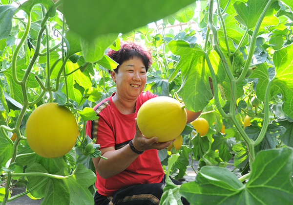 河北省吳橋縣鐵城鎮(zhèn)東關(guān)村農(nóng)民收獲香瓜(5月26日攝)。