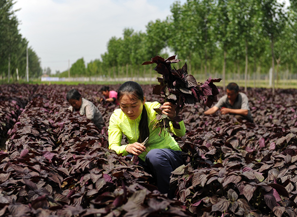 河北省吳橋縣曹洼鄉(xiāng)上村馬村農(nóng)民收獲中藥材紫蘇(5月26日攝)。