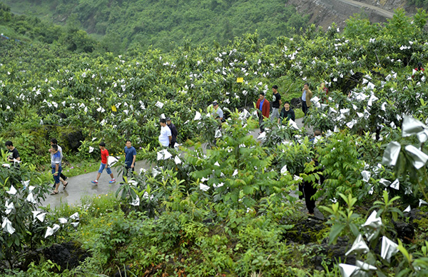 5月26日,游客在湖北省宣恩縣野椒園村一枇杷合作社的基地參觀,體驗枇杷采摘。