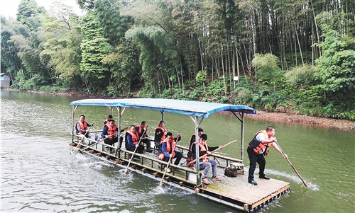 位于宜賓市長寧縣的蜀南竹海風(fēng)景區(qū),是一三產(chǎn)融合的典型代表。120平方公里的竹林,隨山勢(shì)起伏,一直延伸到遠(yuǎn)方,是世界上集中面積最大的天然竹林區(qū)。