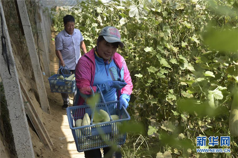 5月31日,在廊坊市安次區(qū)仇莊鄉(xiāng)宋王務(wù)村的大棚內(nèi),村民在采摘甜瓜。